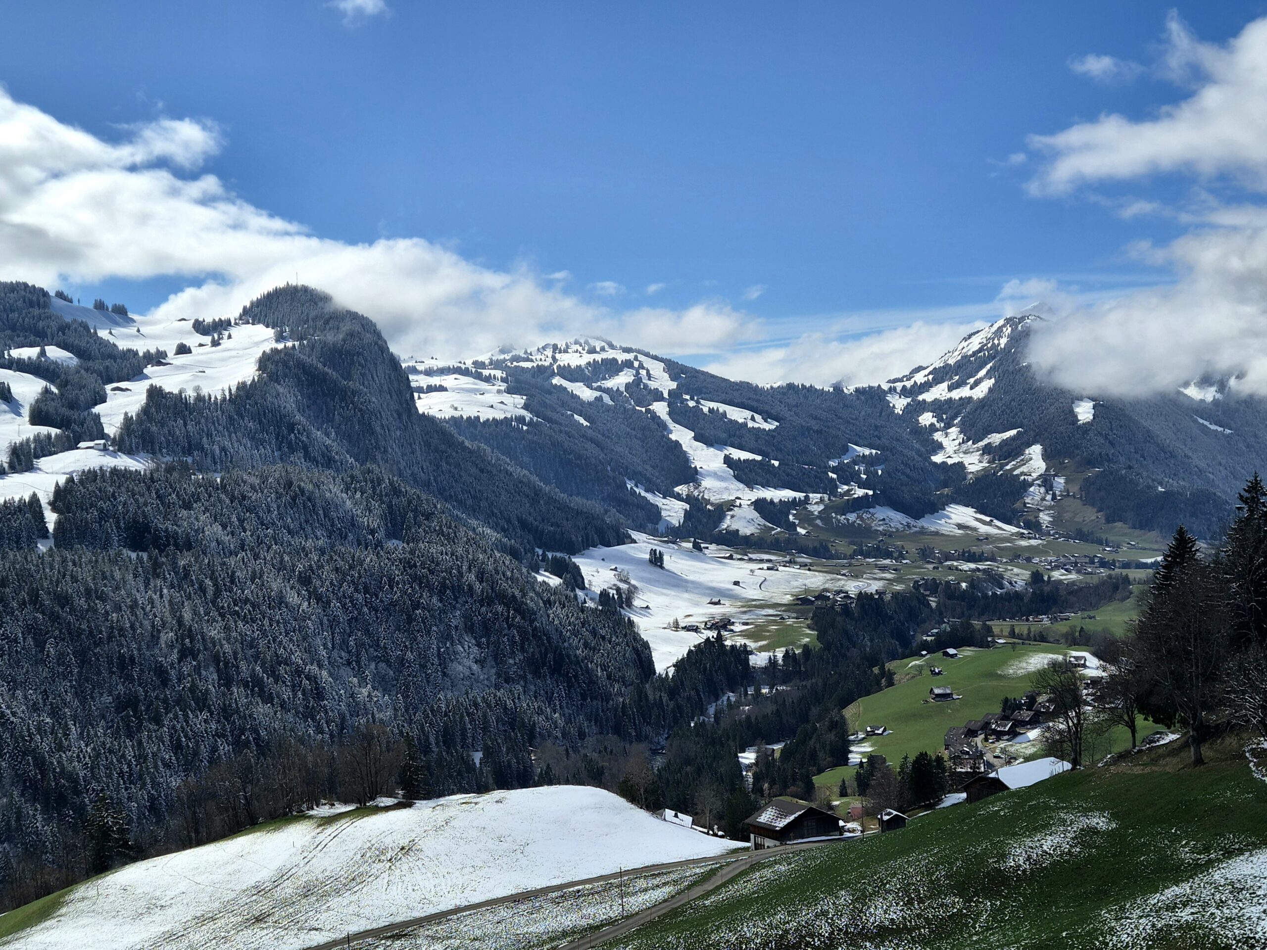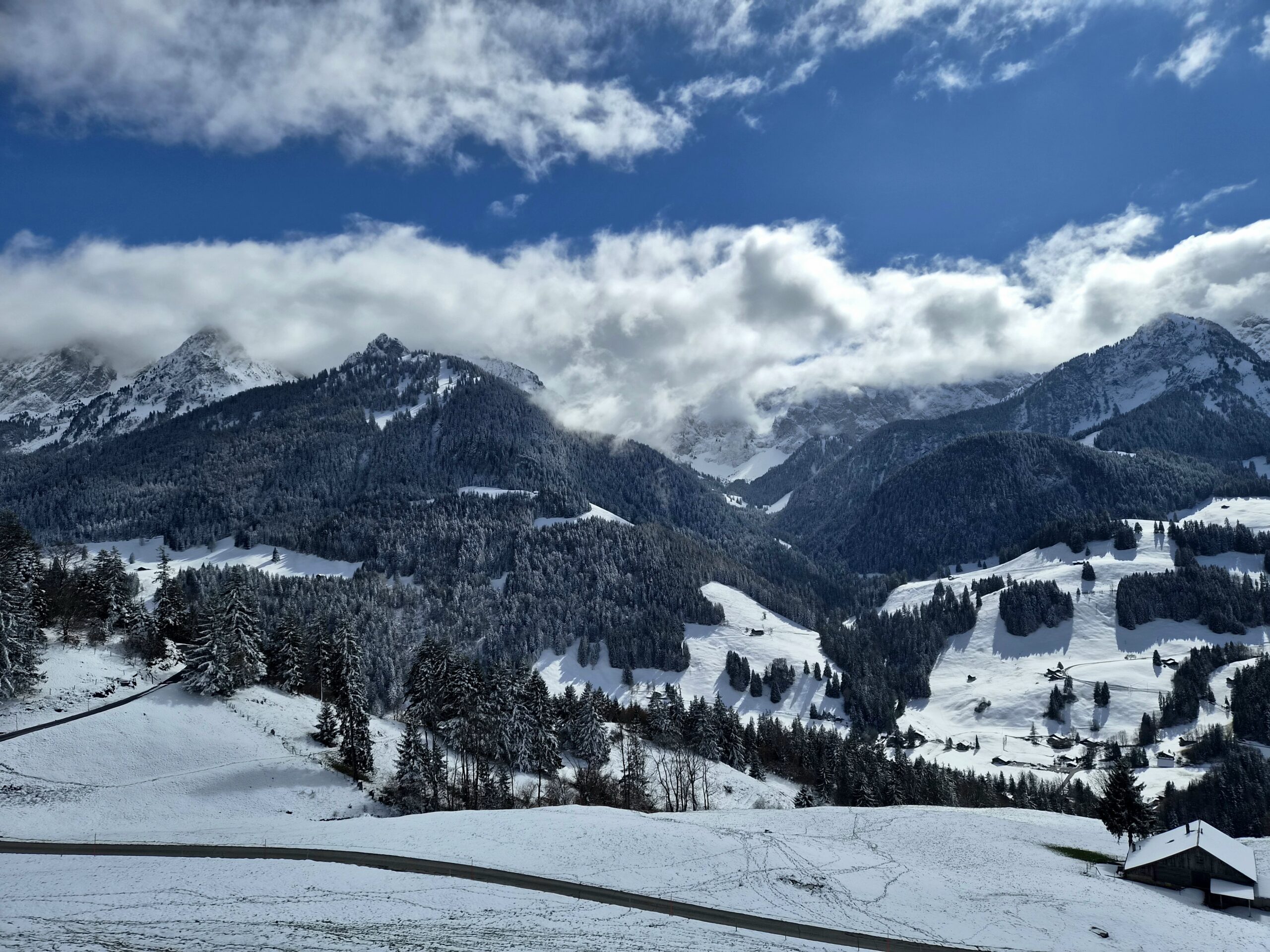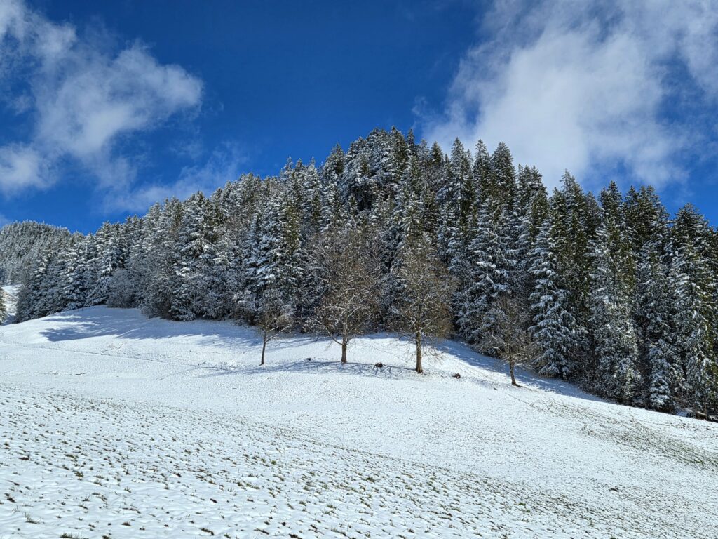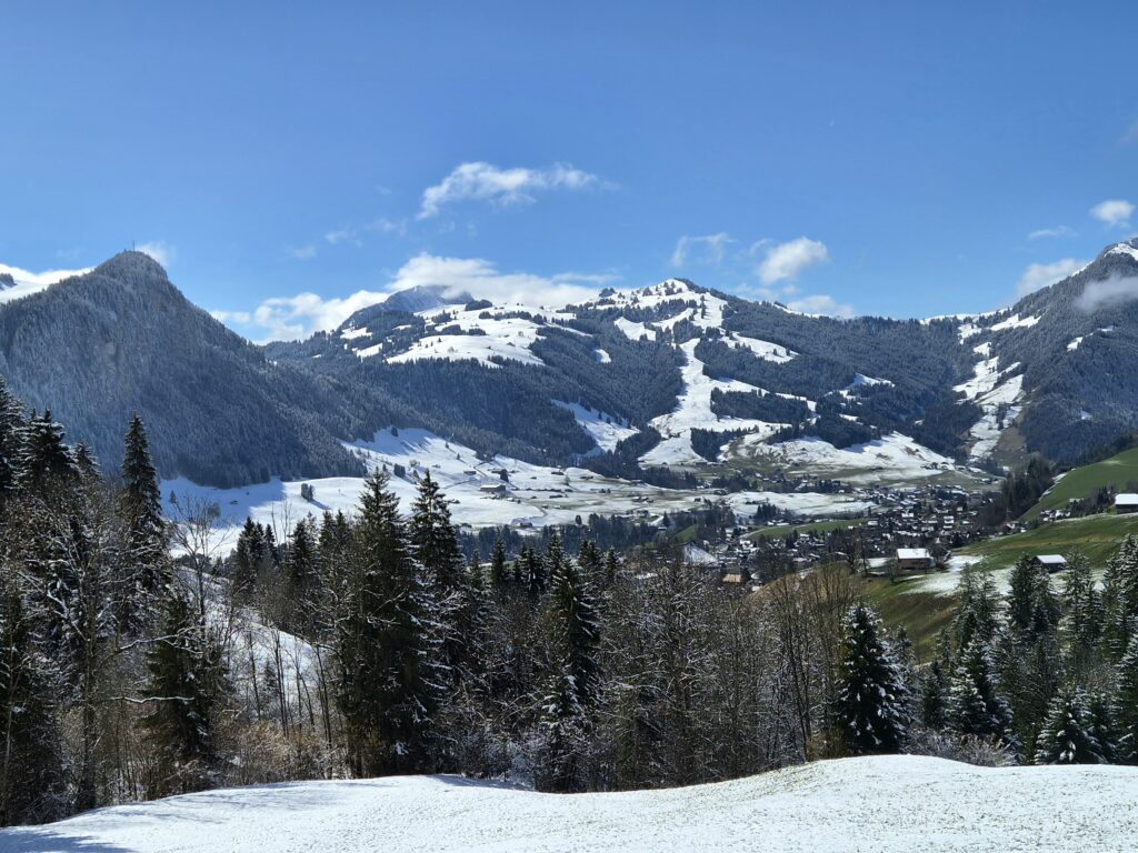 In Château-d’Oex mache ich meine Runde nach Les Echanoz, da es die Sonneseite ist hat es nicht mehr so viel Schnee. Alle Fotos wurden mit dem Samsung s26 gemacht und mit der Galerie App verbessert.